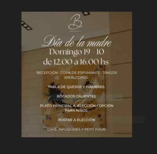 Bernardino Restaurante - establecimiento ubicado en Avenida Rivadavia 947 de la Ciudad Autónoma de Buenos Aires - anunció que se suma a la celebración del Día de la Madre -19 de octubre - y propone disfrutar de su Menú Mama: recepción: espumante + tragos sin alcohol, tabla de quesos y fiambres, bocadillos calientes, principal a elección, postre a la elección, café y petit fours. Incluye una botella de vino cada 2 personas y bebidas sin alcohol. $65.000 adultos- $35.000 niños.
