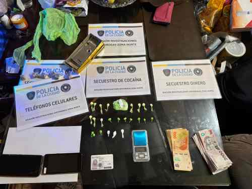Los procedimientos se realizaron por personal de la Policía de la Ciudad y se logró secuestrar casi 25 gramos de cocaína -distribuidos en 43 envoltorios listos para la comercialización y una piedra-, marihuana, pastillas de Clonazepam, celulares, y dinero en efectivo.