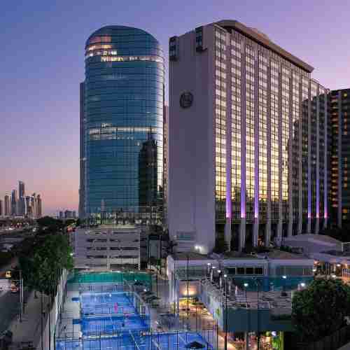 Con vistas a la Torre Monumental, el edificio se compone de 24 pisos que albergan 740 habitaciones, incluyendo 33 suites, y sus instalaciones suman dos piletas, un club de pádel con cuatro canchas, modernas oficinas de coworking, dos restaurantes y un magnífico bar con una espectacular barra de tragos.