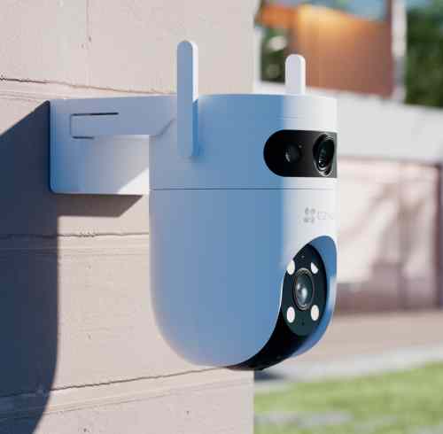 La cámara para exteriores H90 Dual es un dispositivo que eleva la videovigilancia a niveles superiores gracias a su tecnología de cobertura total y visión inteligente. Este dispositivo se caracteriza por combinar dos cámaras giratorias en un solo equipo: una inferior con diseño esférico, heredera de la clásica serie de giro e inclinación de EZVIZ, y una superior con forma ovalada que proporciona un campo de visión ultra amplio.