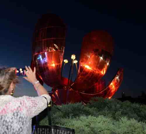 Con 20 metros de altura, la Floralis Genérica fue donada por su autor, el arquitecto argentino Eduardo Catalano. Está realizada en acero inoxidable y aluminio y pesa 18 toneladas. Se inauguró en 2002 y su nombre es un homenaje a todas las flores".