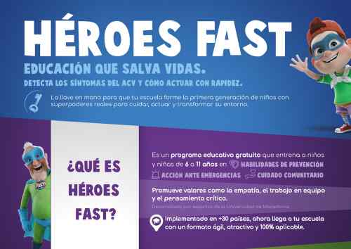 Llega el programa "Héroes FAST” - iniciativa que combina juego y educación para que los niños aprendan a reconocer los signos del accidente cerebrovascular y se conviertan en agentes de prevención dentro de sus hogares - para formar pequeños héroes contra el ACV.“Los niños son grandes multiplicadores de mensajes. Con Héroes FAST buscamos que ellos lleven a sus hogares una enseñanza simple pero vital: reconocer los signos de un ACV y saber qué hacer a tiempo” afirmó Florencia Domínguez, responsable regional del Programa para Hispanoamérica.