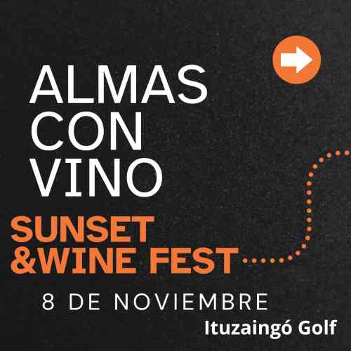 El próximo 8 de noviembre se realizará la 1° edición de ALMAS CON VINO en las instalaciones de Ituzango Golf Club - Vicente, V. Gerde 97, Merlo, Provincia de Buenos Aires - desde las 19:30 y hasta las 23:30 horas. En la 1° edición de ALMAS CON VINO se podrá disfrutar de las etiquetas de las siguientes bodegas: Pontilli, Huella del Vino, Familia Salvarredi, Familia Luján Conesa, Melodía, Diego Latidos, Puna, Leblin Cream, Laccarini, Adrover y Araujo, entre otras. También los asistentes podrán disfrutar de la gastronomía que ofrecerá Perniles del Chef y Nuestro Campo, entre otros establecimientos. Entradas por https://www.eventbrite.com.ar