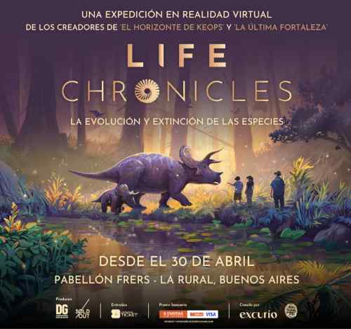 Llega la experiencia “Life Chronicles” - La evolución y extinción de las especies, propuesta que se podrá disfrutar desde el próximo 30 de abril Avenida Santa Fe 4363 de la Ciudad Autónoma de Buenos Aires. “Life Chronicles” - La evolución y extinción de las especies, es viaje único para descubrir la evolución de la vida en la Tierra,desde los primeros organismos vivos hasta los grandes dinosaurios y la creación del ser humano, a lo largo de 3.500 millones de años.